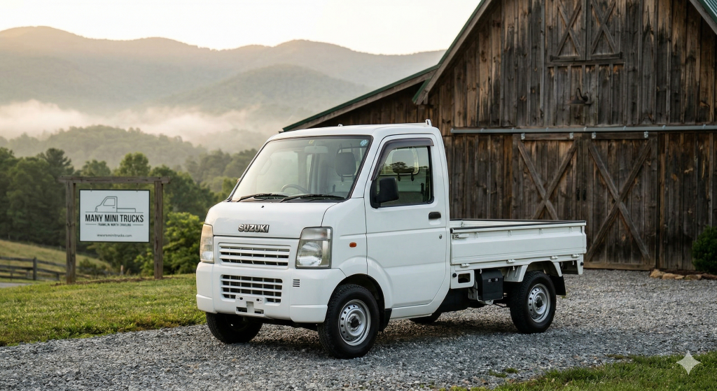 We’re Many Mini Trucks, right here in Franklin, NC — and we keep a rotating inventory of inspected kei trucks ready to go. Whether you’re after a Suzuki Carry for the farm, a Daihatsu Hijet for the job site, or something to get you back on the trail, we’d love to help you find the right fit.